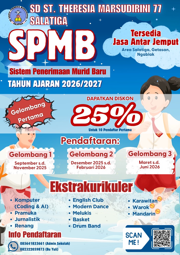 Mari bergabung bersama kami di SD Santa Theresia Marsudirini 77 Salatiga!